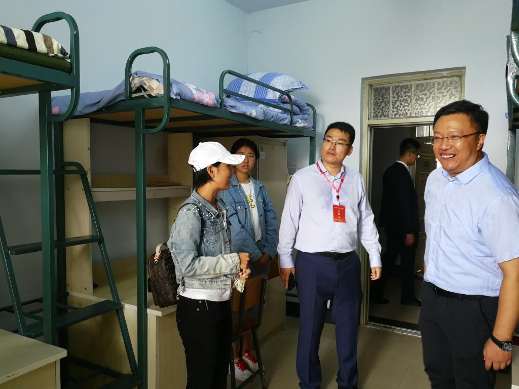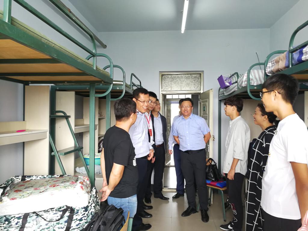 上午十时许,学院领导走进新生寝室了解新生情况。在走访过程中,高院长与新生们展开亲切友好的交谈,并十分关心新生能否适应新的生活环境。新生们纷纷表示很满意学校的住宿条件,并且有信心尽快适应大学新生活。新生们提出的关于食宿等生活方面问题也都得到院领导的耐心解答。李善兴书记还为新生大学时期的学习生活提出了宝贵建议,鼓励同学们要珍惜当下良好条件,努力学习,用知识充实武装自己,多方面完善自我,充分利用大学四年时光,为成为社会的中流砥柱而奋斗。在交流的过程中,学院领导与新生的距离被悄然拉近。