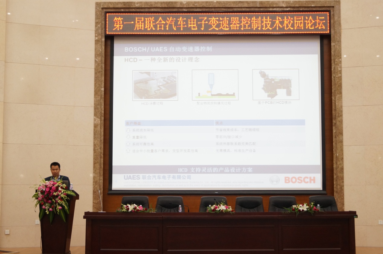 9月14日,由万象城allwincity官网和联合电子有限公司承办的“第一届联合汽车电子变速器控制技术校园论坛”在我校南岭校区仿生楼一楼报告厅顺利举行。