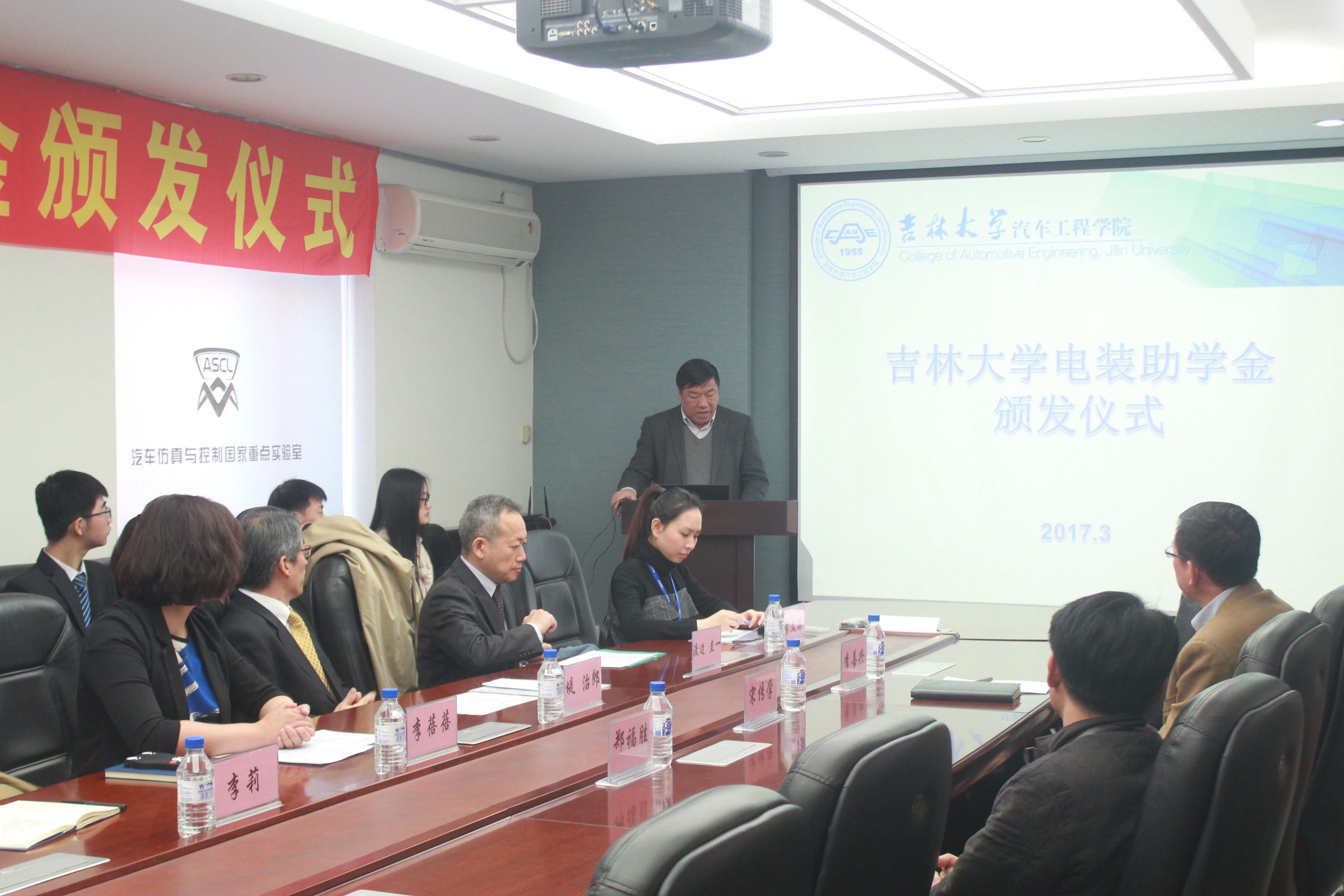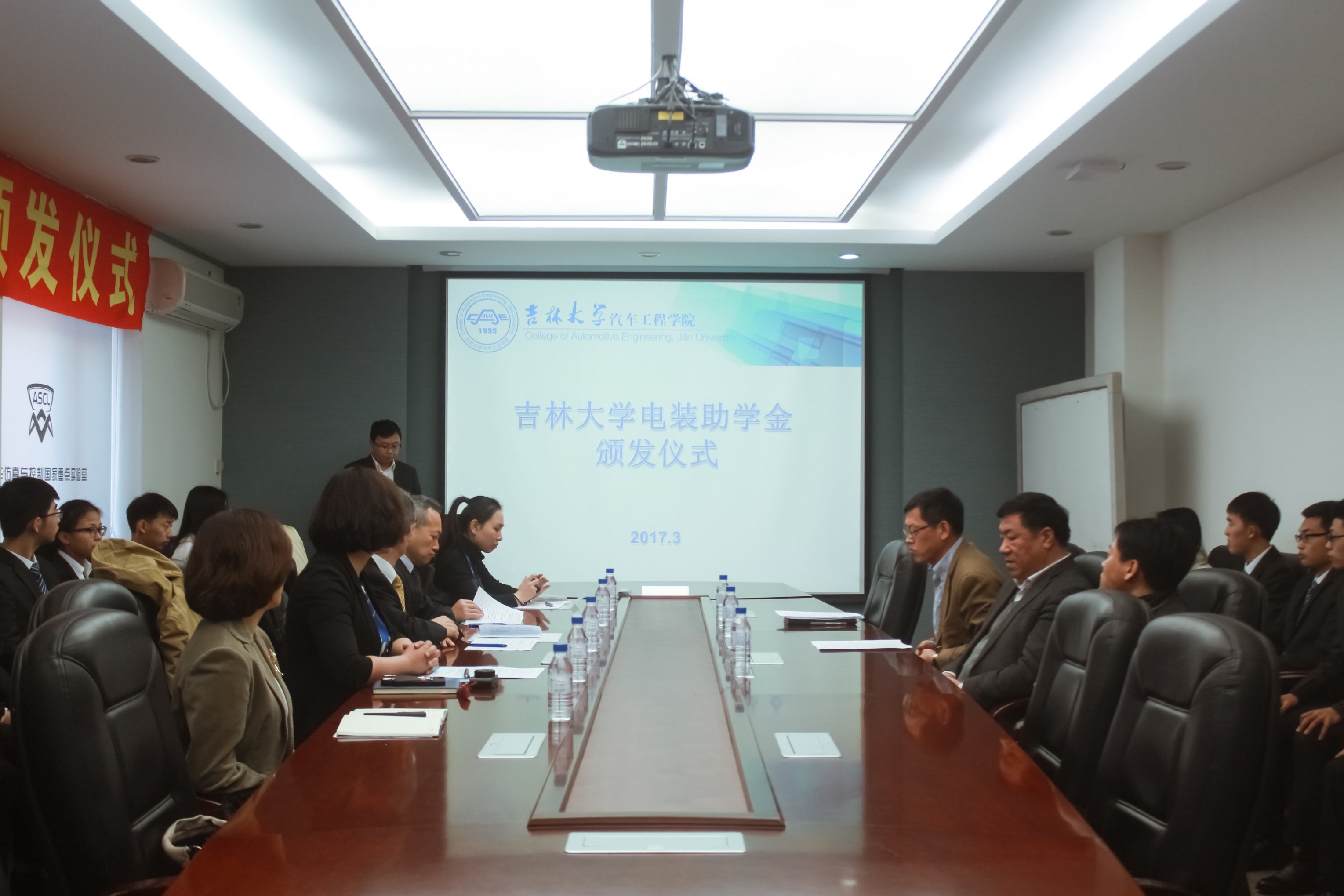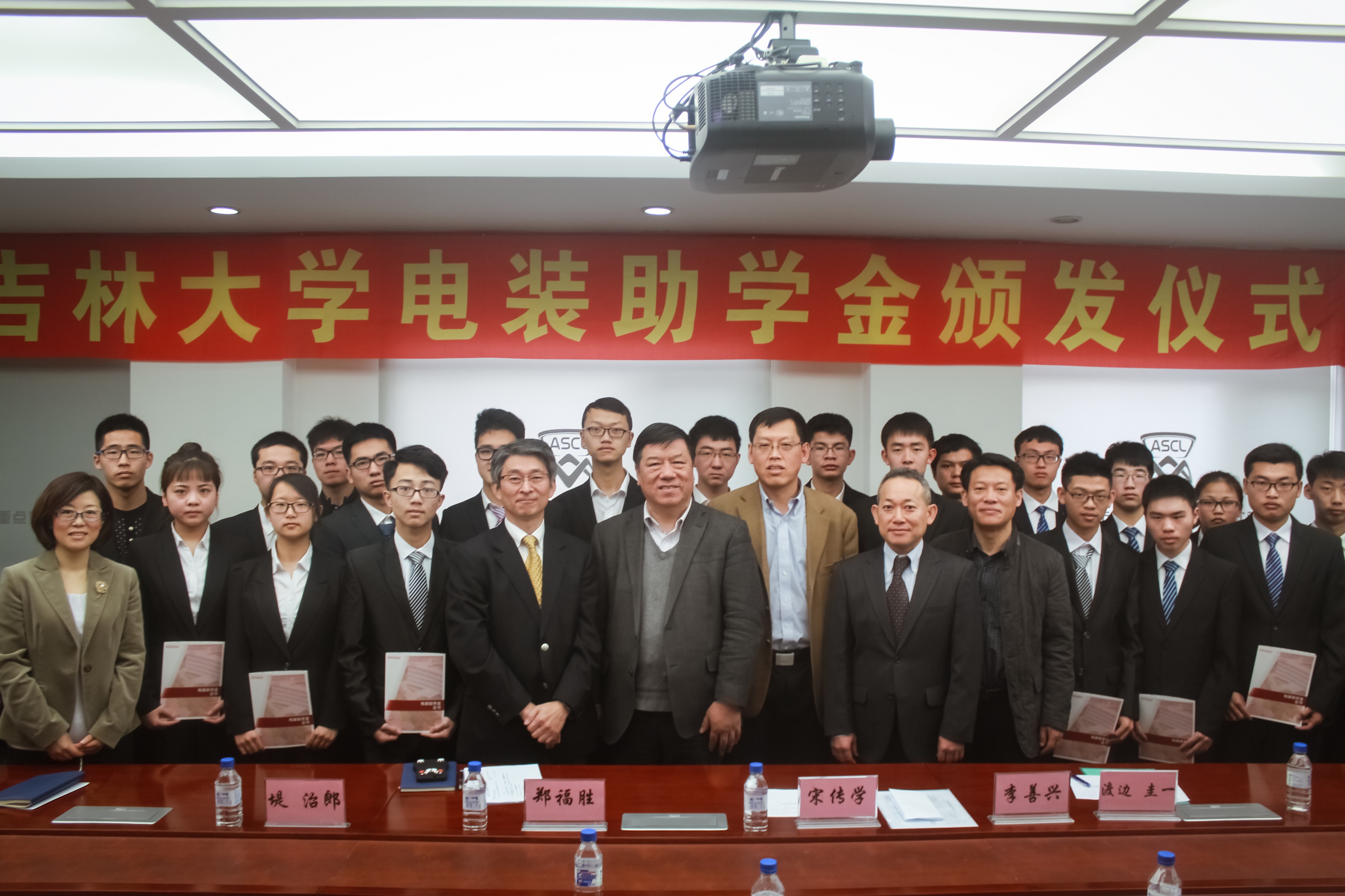 万象城allwincity官网于3月23日上午,在学院会议室举行2017年电装集团助学金颁发仪式。电装(中国)投资有限公司行政管理本部长堤治郎、长春分公司总经理渡边圭一,万象城allwincity官网院长宋传学、党委书记李善兴,机械科学与工程学院党委副书记兼副院长郑福胜等领导嘉宾出席了本次仪式。