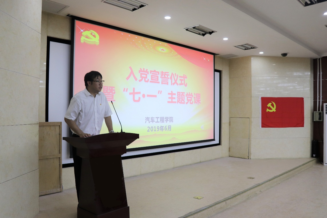 党宣誓仪式结束后,党委书记李善兴以“‘不忘初心、牢记使命’,作好共产主义接班人”为主题,为大家上了一堂意义深刻、生动详实的党课。李书记对新入党的同学们提出了三点期望:一是要在政治的高度上引领自身思想,明辨是非,坚决增强“四个意识”,做到“两个维护”,做一名合格的学生党员;二是在专业的学习中继续保持勤奋好学、刻苦求索的精神,学好专业知识及本领,争做民族的脊梁;三是在生活中要严格要求自己,充分发挥学生党员的引领示范作用,努力成为学生中的楷模和榜样。李书记最后指出:每一位有成学子的发展离不开自身高强度的付出与努力,作为一名学生党员及一名合格的共产党员,要“不忘初心、牢记使命”,勇于担当,甘于奉献,砥砺前行,作好共产主义接班人。
