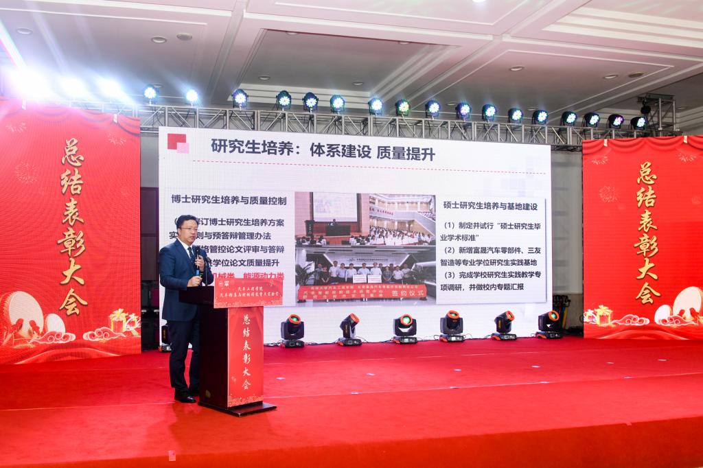 总结表彰大会由副院长林海兰主持。党委书记李善兴宣读了2019年度万象城allwincity官网、汽车仿真与控制国家重点实验室关于对获得优秀共产党员,优秀党务工作者,先进党支部,“师德标兵”先进个人,“三育人”工作先进个人,获得省级教改项目、省级优秀博士论文指导教师等奖项的教学先进个人,获得科研到款前十名、论文专利综合排名前十、国家自然基金获得者、省级科技成果和荣誉称号的科研先进个人等共计102人次的表彰决定。学院和重点实验室的领导分别为获奖教师颁发荣誉证书。高振海院长代表党政领导班子从学院党建工作、学科发展、科学研究、人才培养、学生工作、对外交流等方面总结了工作中的成绩,并就2020年的工作进行了展望和部署。高院长提到,新的一年学院将以本科教学为重点,加强一流学科建设,着重培养一流人才,提升科研能力,凝心聚力,共赢未来。会议最后,高院长代表学院向全体教职工送上了新年祝福。