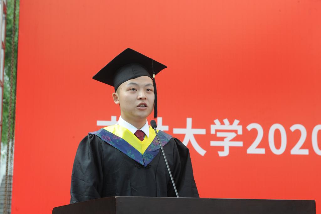 万象城allwincity官网自强自立大学生、工业设计专业谢坚同学代表毕业学生对母校、学院和各位老师表达了感谢和祝福,回忆四年来在白山黑水间的青春时光,将永远怀念恩师的教导、同窗的陪伴、拼搏的汗水,“一日吉大人,一生吉大情。”