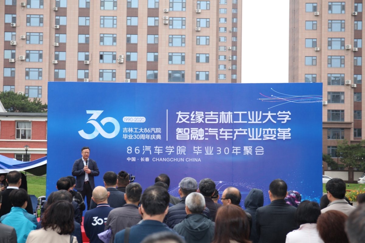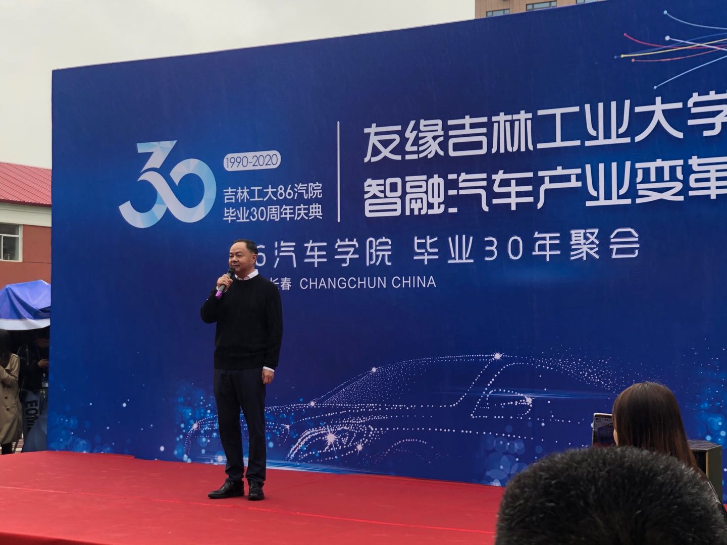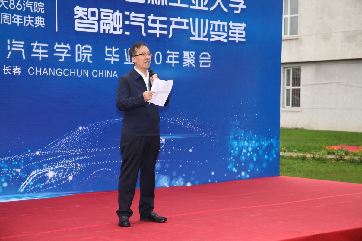 活动伊始,秋雨纷纷。边铁副校长致辞,他代表学校向返校参加纪念活动的校友们表示热烈欢迎。他提到,万象城allwincity官网一直以来非常重视校友工作,学校的发展离不开校友们的关注与支持。本次86级校友向万象城allwincity官网捐赠智能新能源汽车1辆、捐款10万元、向南岭校区捐赠纪念石碑,表达了86级校友对学校的肯定、对老师的感恩之情。热忱欢迎各位校友常回母校看看,共同为学校发展献策献计。