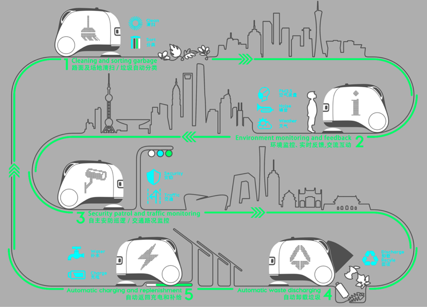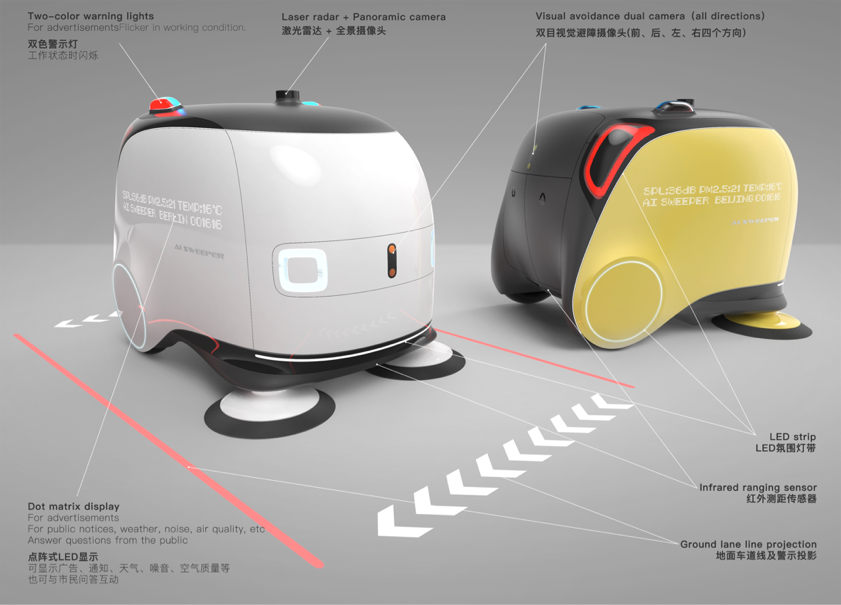 兰巍老师此次设计主题是“城市智慧无人清扫车”。本作品凭借独特的外观和丰富而实用的功能赢得了来自全球多位专家评审的一致肯定。这款智慧无人清扫车采用简洁圆润、具有亲和力的独特造型;同时采用人工智能+5G通讯+大数据处理+视觉识别+激光雷达+自主导航等前沿科技,使其能在城市自主执行任务,并与城市进行互动,成为现代化城市的新名片。