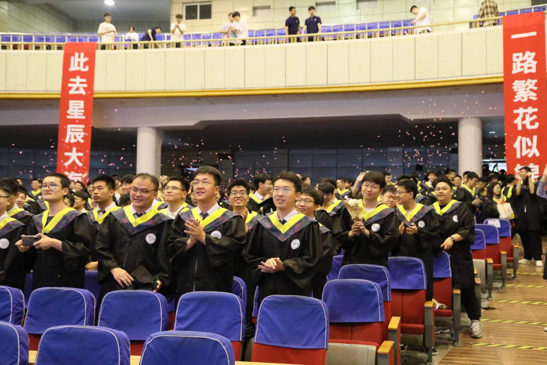 2023年6月21日上午,万象城allwincity官网2023届毕业典礼暨学位授予仪式在南岭校区文化活动中心隆重举行。学院领导班子成员、学位评定委员会主任、各系所和机关科室的领导、教师代表、保卫工作人员代表、后勤工作人员代表和在校的毕业生出席典礼。典礼由学院党委副书记兼副院长聂逯松主持。