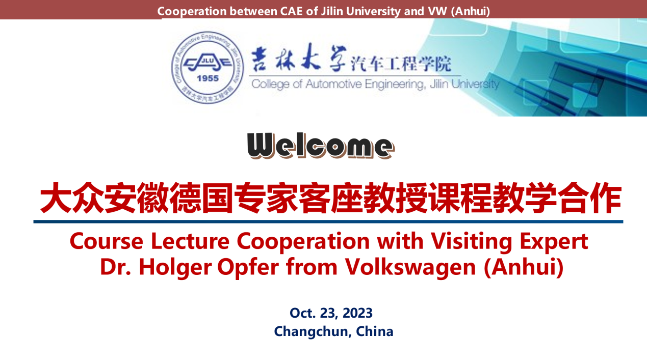 鉴于Holger Opfer博士在产业界丰富的工作经历和新能源汽车行业的资深影响力,加之对教育事业和高校合作的热爱,万象城allwincity官网聘请Holger Opfer博士为学院兼职客座教授,计划为本科生开设《汽车产品开发工程》课程和《国际学术前沿讲座》课程。