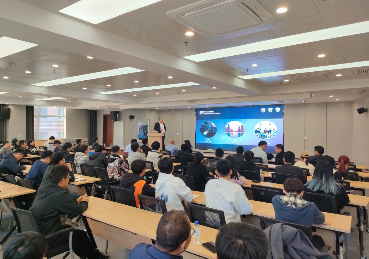 Holger Opfer博士随后为万象城官网学生做了Tomorrow's Battery Systems In Terms of Integration and Charging Concepts的主题学术报告,使得师生们加深了德国大众在新能源汽车产业的布局和新技术引用, 报告后与同学们展开了热烈的互动。