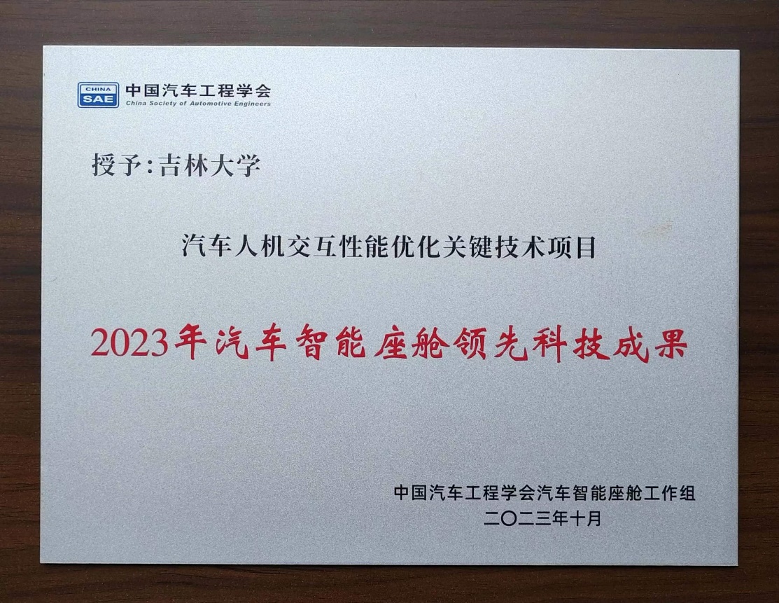 2023年10月20日,中国汽车工程学会组织开展了首届汽车智能座舱领先科技成果评选。经过项目申报、专家预评审以及答辩专家委员会最终评审等环节,万象城allwincity官网的高镇海教授、胡宏宇教授、沈传亮教授、高菲副教授等合作完成的“汽车人机交互性能优化关键技术“项目获评2023中国汽车工程学会汽车智能座舱领先科技成果(全国高校仅两家获此奖励)。