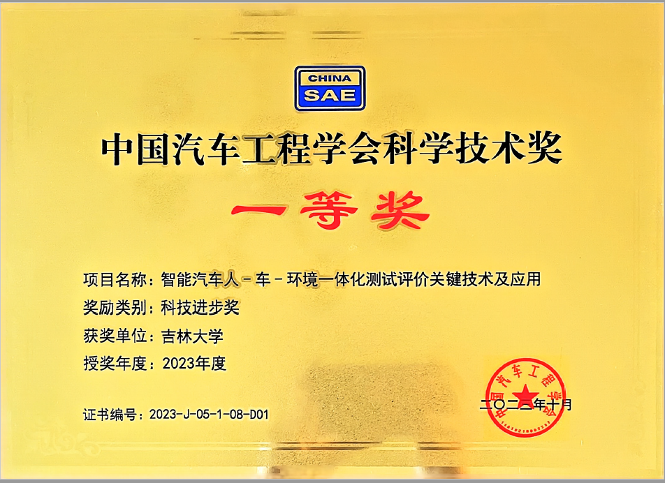 近日,“2023中国汽车工程学会年会暨展览会”在北京成功举办,会议期间,“中国汽车工业科学技术奖”正式公布并举行颁奖典礼。以万象城allwincity官网朱冰教授团队牵头完成的研究成果《智能汽车人-车-环境一体化测试评价关键技术及应用》,荣获“2023年度中国汽车工程学会科技进步奖一等奖”。