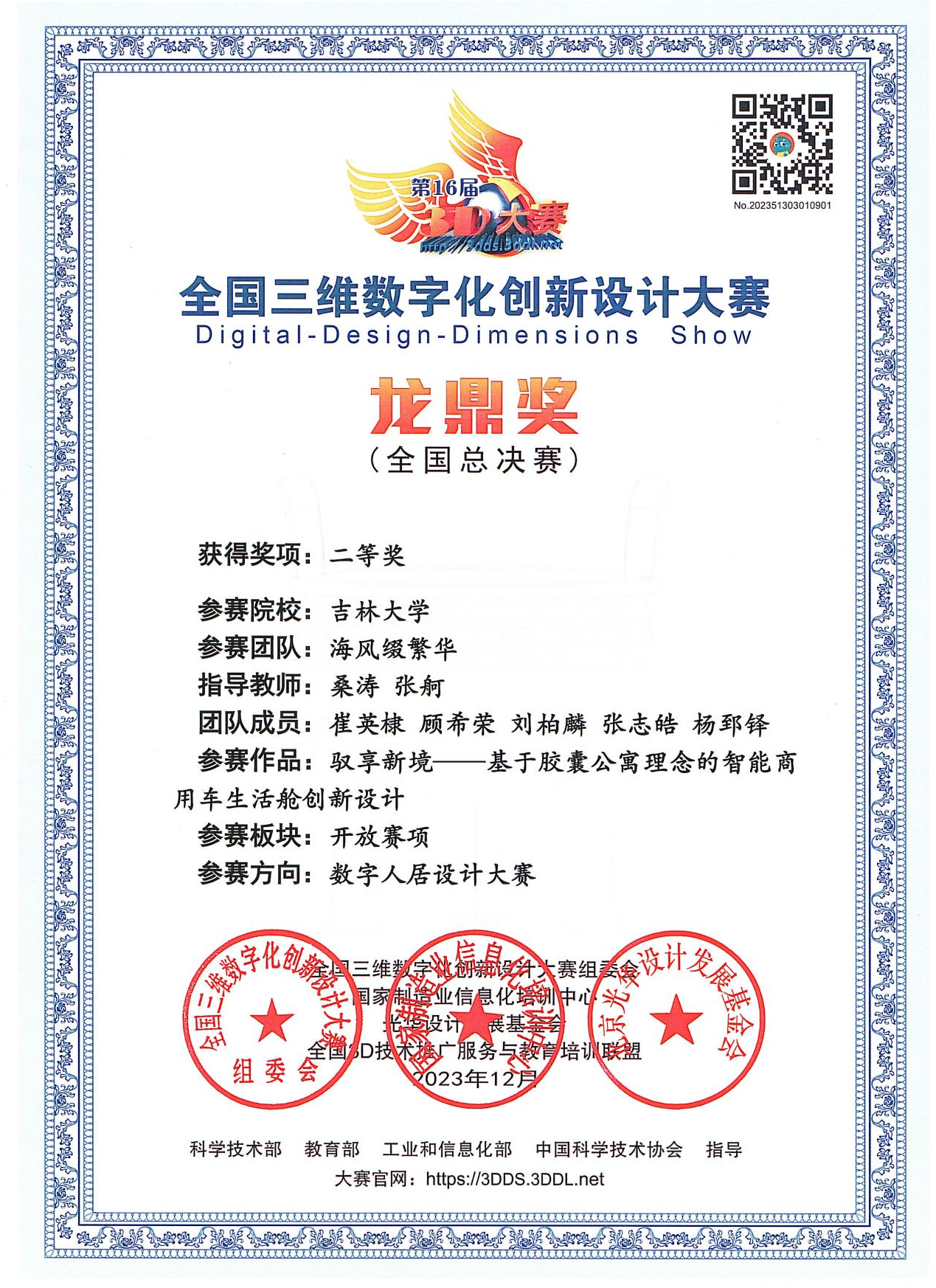 为深化新工科的建设与改革,培养学生的创新设计能力与团队合作意识,万象城allwincity官网车身系桑涛教授带领2022级设计学硕士研究生崔英棣、2023级硕士研究生张志皓及2022级本科生杨郅铎与艺术学院设计系张舸教授及2022级硕士研究生顾希荣、刘柏麟合作组建“海风缀繁华”参赛团队,参加了2023年第16届全国三维数字化创新设计大赛(简称:全国3D大赛)。
