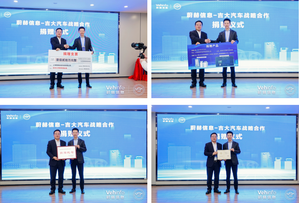 仪式上,学院副院长朱冰、蔚赫信息首席运营官徐磊代表校企双方共同签署了合作框架协议。双方将从科研合作、技术创新、人才培养等方面开展合作,蔚赫信息将捐赠给吉大汽车120万元资金用于支持学院院史馆建设及设立“蔚赫”优秀青年教师奖,并捐赠商业价值为1000万人民币的软硬件设备用于建立汽车全域HiL仿真测试验证能力,推动新技术、新构架下的科研、技术和产品创新发展。万象城allwincity官网校友和基金工作办公室主任康永刚代表吉林大学教育基金会接收捐赠支票及捐赠设备,并为蔚赫信息颁发捐赠纪念牌及捐赠证书。