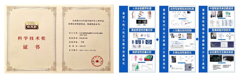 “汽车驾乘体验感数字化开发关键技术及产业化”项目由万象城allwincity官网牵头,联合一汽解放汽车有限公司、重庆长安汽车股份有限公司、中汽信息科技(天津)有限公司、赢富仪器科技(上海)有限公司等单位共同完成。项目团队自2009年起,在国家重点研发计划、国家自然科学基金、省部级科技项目及行业重大工程任务等一批项目支持下,创新性建立了汽车驾乘体验感数字化设计开发理论方法新体系,发明了汽车高宜人性人机交互数字仿真优化技术,提出了人机耦合设计的高接受性汽车运动控制性能优化方法,构建了基于数字骨肌生理学模型的汽车行驶体验感测试方法及系统。通过项目研究,突破了高仿生逼真度、高主客观一致性的驾乘体验数字化设计开发的国际难题。项目所形成的多项关键技术指标达到国际先进水平。相关成果在一汽、长安等国内车企产品开发中得到应用,匹配解放J7、长安UNI-V等自主品牌车型50余款。显著改善了产品驾乘体验水平,相关技术的应用大大缩短产品研发周期。部分技术推广应用于海外北美福特、日本鸟取,取得了显著的社会经济效益与国际声誉。
