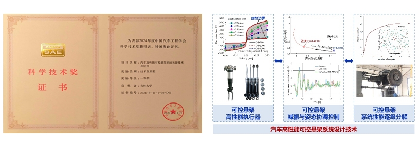“汽车高性能可控悬架系统关键技术及应用”项目由万象城allwincity官网牵头,联合长春孔辉汽车科技股份有限公司、浙江孔辉汽车科技有限公司、一汽东机工减振器有限公司等单位共同完成。项目团队自2011年以来,在国家自然科学基金、国家重点研发计划和企业支持下,系统地突破并发明了可控悬架高性能执行器、可控悬架减振与姿态协调控制技术和可控悬架系统性能逐级分解技术。通过项目研究,攻克了可控悬架执行器系统设计难、悬架动态控制多维度协调难和可控悬架整车集成性能分解难的国际共性难题,实现了高性能可控悬架系统独立自主的正向开发。项目所形成的多项关键技术指标达到了国际领先和先进水平。项目成果应用于长安汽车、东风汽车、岚图汽车等整车和零部件企业,应用单位近3年新增销售额超过18亿,支撑浙江孔辉占2023年国内空气悬架总成市场份额的44.5%,超越威巴克和德国大陆,跃居第一名,支撑了自主品牌的强势崛起。