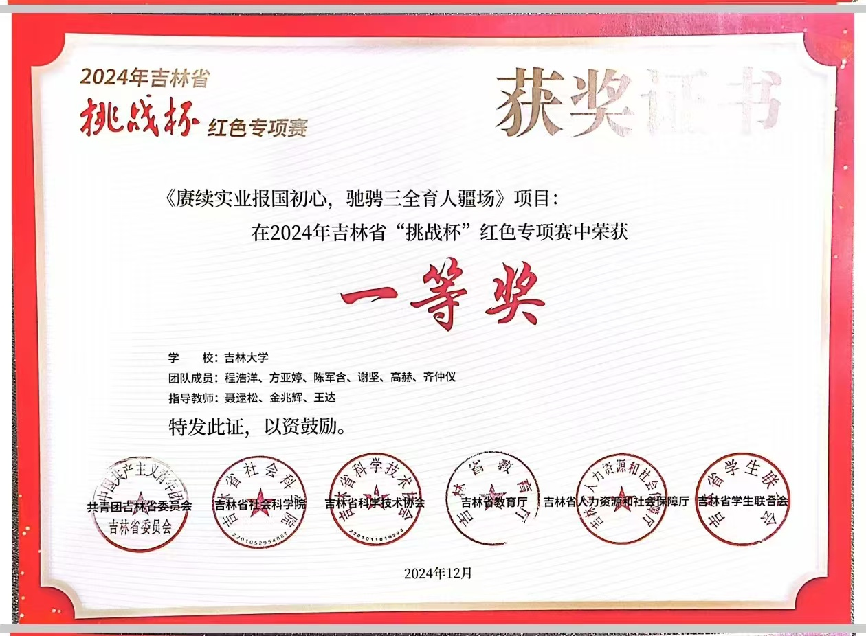 近日,在共青团吉林省委员会、吉林省社会科学院、吉林省科学技术协会、吉林省教育厅、吉林省人力资源和社会保障厅、吉林省学生联合会共同主办的2024年吉林省“挑战杯”红色专项赛中,万象城allwincity官网学生工作办公室和学生车队党支部指导学生参赛并取得优异成绩。其中,参赛项目《赓续实业报国初心,驰骋三全育人疆场 ————以万象城allwincity官网学生车队为例探究红色精神对双创实践平台的促进作用》荣获该专项赛一等奖。