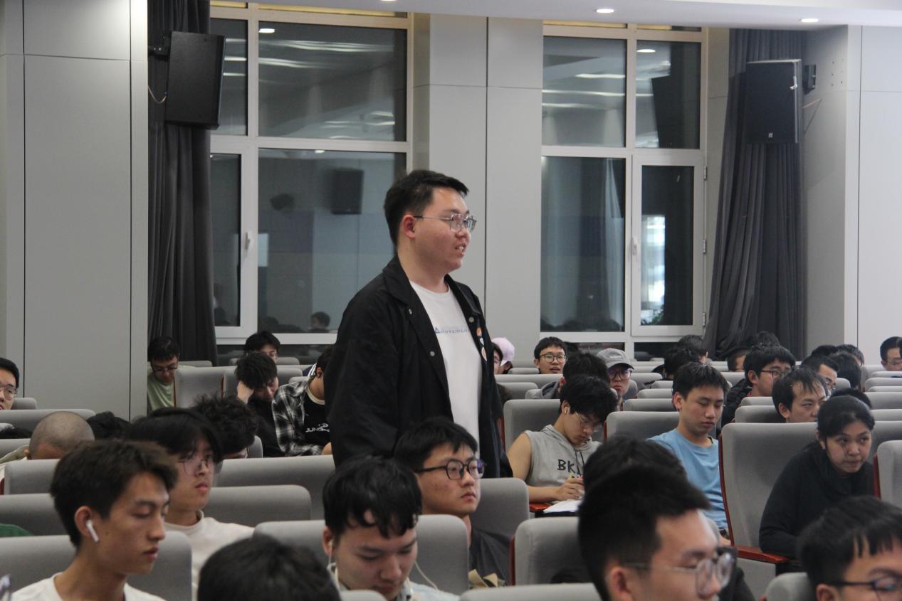 在互动交流环节中,陈红旭学长围绕提出的学业规划、职业发展等问题,为同学们现场答疑解惑,氛围热烈。最后,王军年老师叮嘱同学们要以学长学以致用、学以报国的感人故事激励自己,珍惜在学校每一次完成作业、实验实习、参与答辩、课设实践的机会,认认真真做事、踏踏实实做人,传承吉大良好学风与工作作风;审视时代发展趋势,将个人发展与国家时代发展相统一,主动迎接时代挑战,树立正确的求学观和择业观。