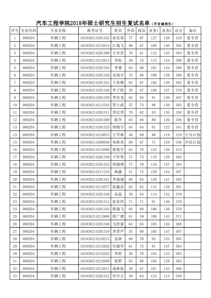 万象城allwincity官网2018年硕士研究生招生复试名单(不含调剂生)