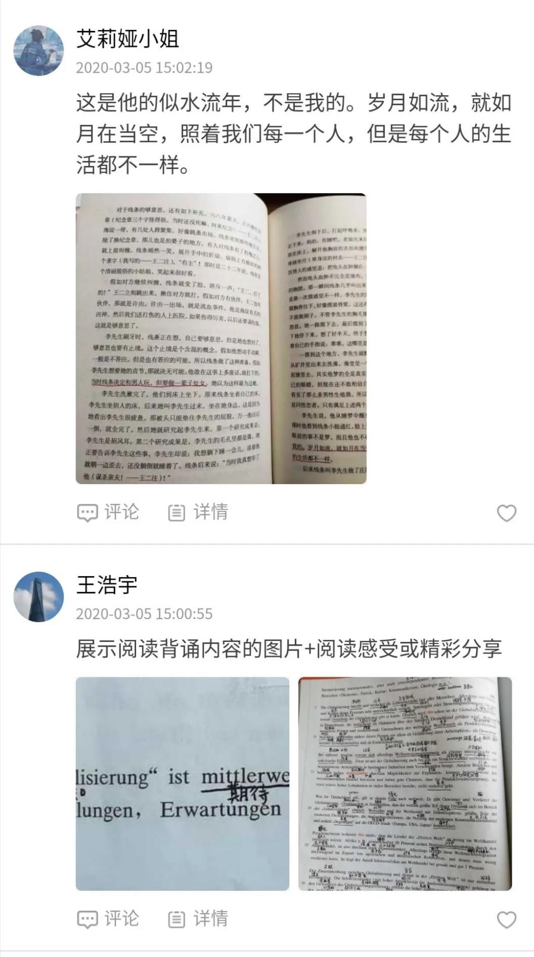 本次每日一读活动,在学院的大力推动下,将阅读普及到了同学们的日常生活中,使同学们重拾了阅读带来的满足和乐趣。相信同学们一定可以充分利用这段时间,克服疫情所带来的负面情绪,在学院的带领下,将每日阅读融合进日常生活。