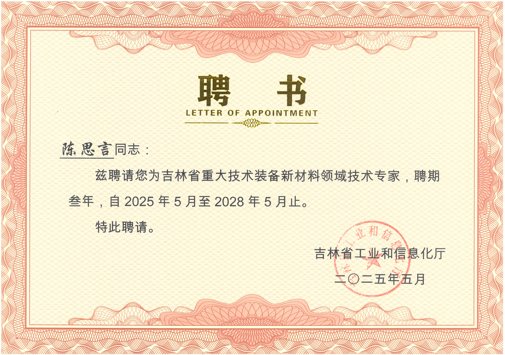 在学生指导与学科竞赛方面,指导研究生与本科生多次获得国家奖学金、学术业绩奖学金和本科生科研训练优秀项目。指导学生获得2024年“挑战杯”吉林省赛区金奖,全国赛区银奖(证书编号:220020015);2024年“中国国际大学生创新大赛”吉林省赛区金奖,全国赛区铜奖。