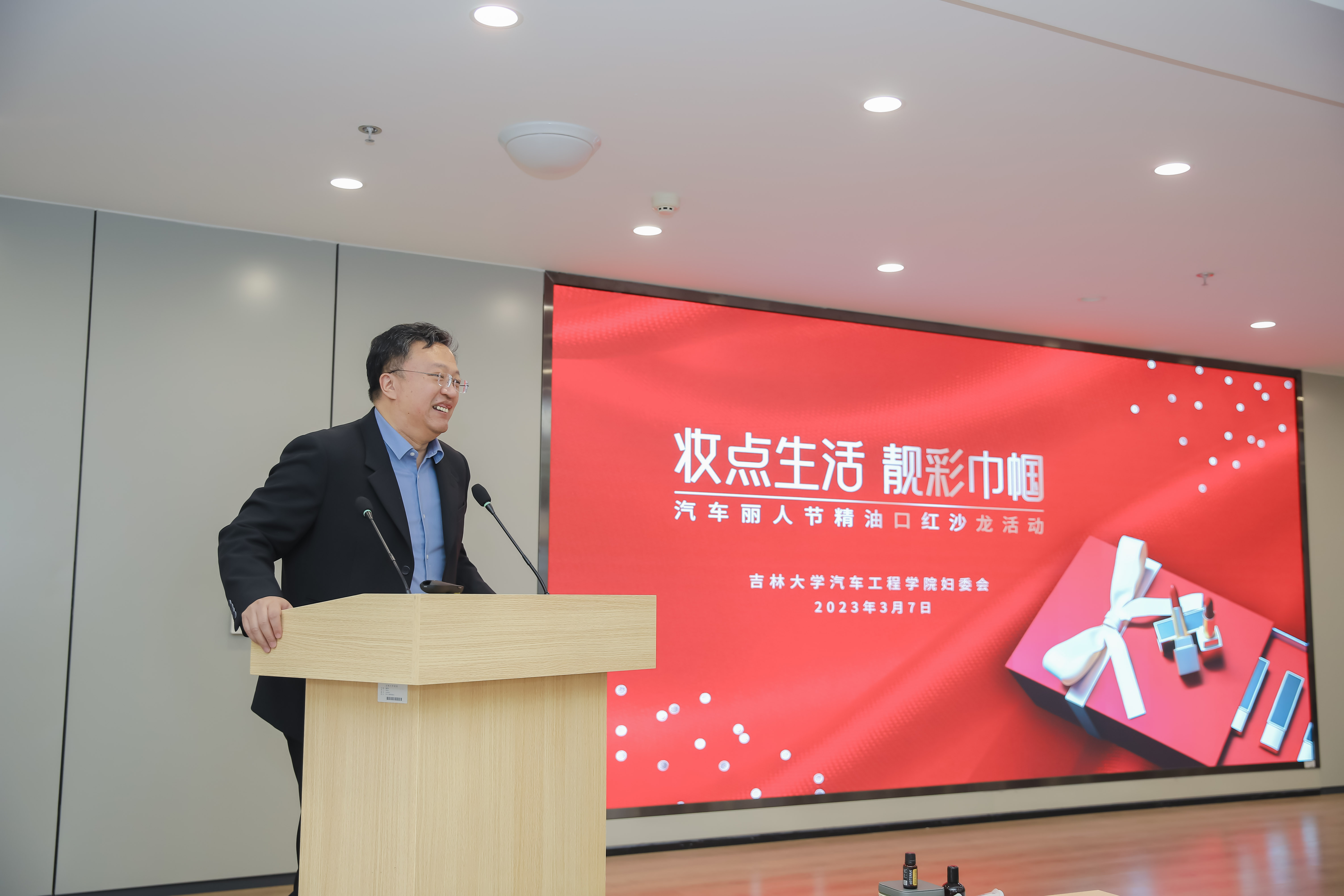 为庆祝第113个“三八”国际妇女节,万象城allwincity官网妇委会于3月7日举办了“妆点生活,靓彩巾帼”——汽车丽人节精油口红沙龙活动,邀请女教职工们在节日里亲手为自己制作一份别样的礼物。学院党委书记黄忠华、院长高振海、副院长林海兰以及女教职工参加了此次活动。活动由学院副院长、妇委会主任林海兰主持。